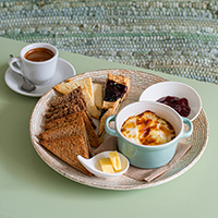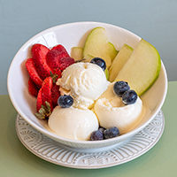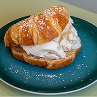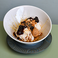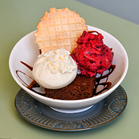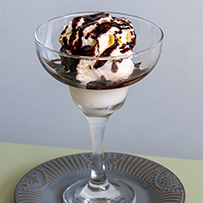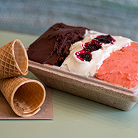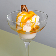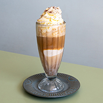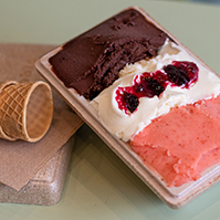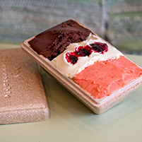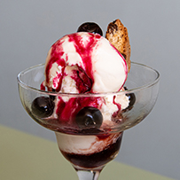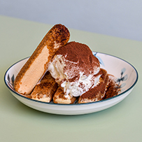 Gelato di mascarpone, savoiardi bagnati con espresso e cacao.