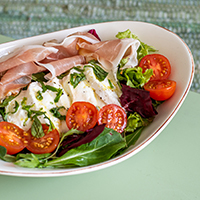 Mezclun pomodori cherry mozzarella di bufala prosciutto crudo